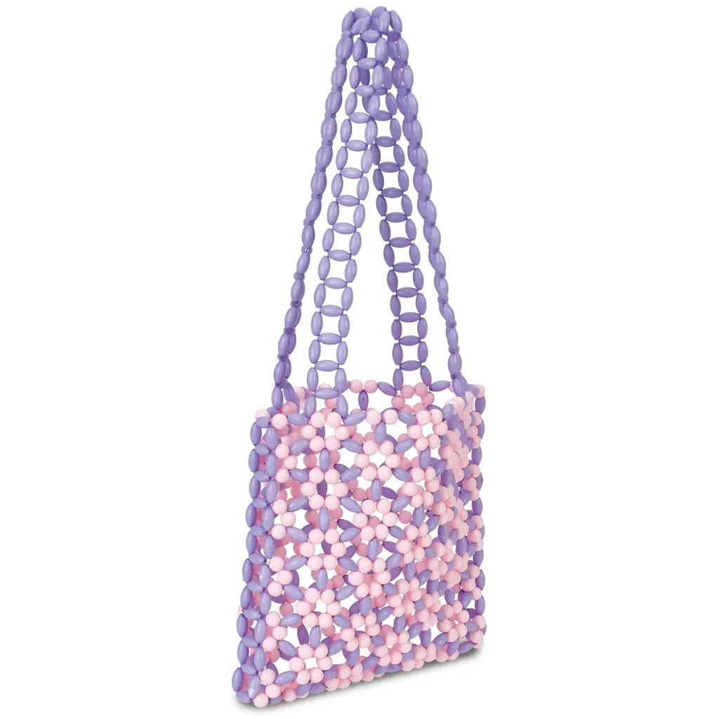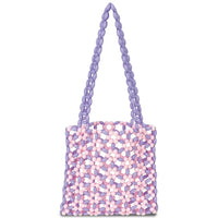 Glitter Hearts Straw Pearl Handle Tote Bag