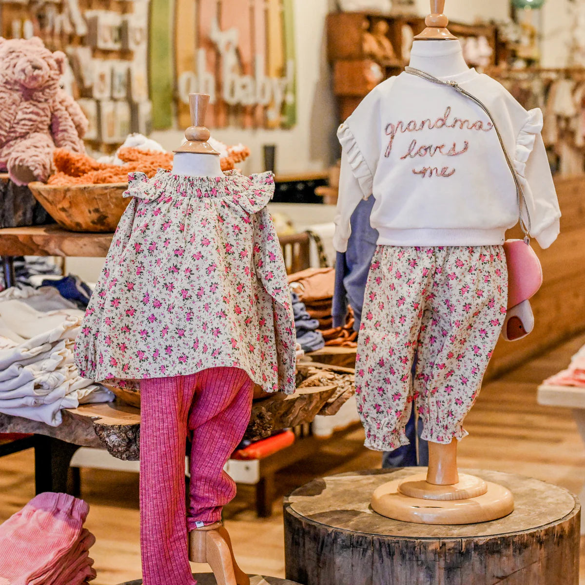 Puppy Faces Print Two-Piece Set in Heather Gray