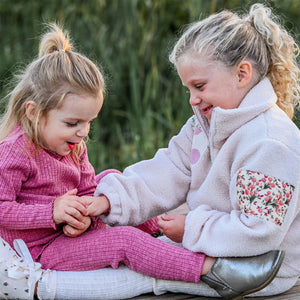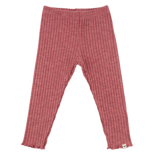 These berry-colored wide-rib leggings feature a fun lettuce edge trim and a comfy elastic waistband. Perfectly sized for little ones from infants to girls, they add a playful touch to any outfit. Designed in Minnesota.