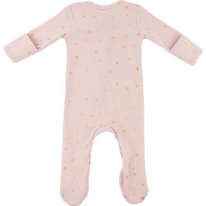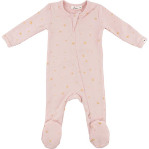Mini Gold Star Foil Zipper Footie in Dusty Pink
