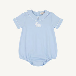 Hop into springtime style with this adorable Short Sleeve Biltmore Bubble! Featuring a classic Peter Pan collar and a charming embroidered bunny on the front, this little one's essential is perfect for Easter celebrations and beyond. The soft bubble silhouette offers comfort and movement for active babies, while the sweet bunny detail adds a whimsical touch that parents will love. An instant wardrobe favorite for festive occasions and everyday wear.