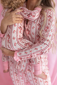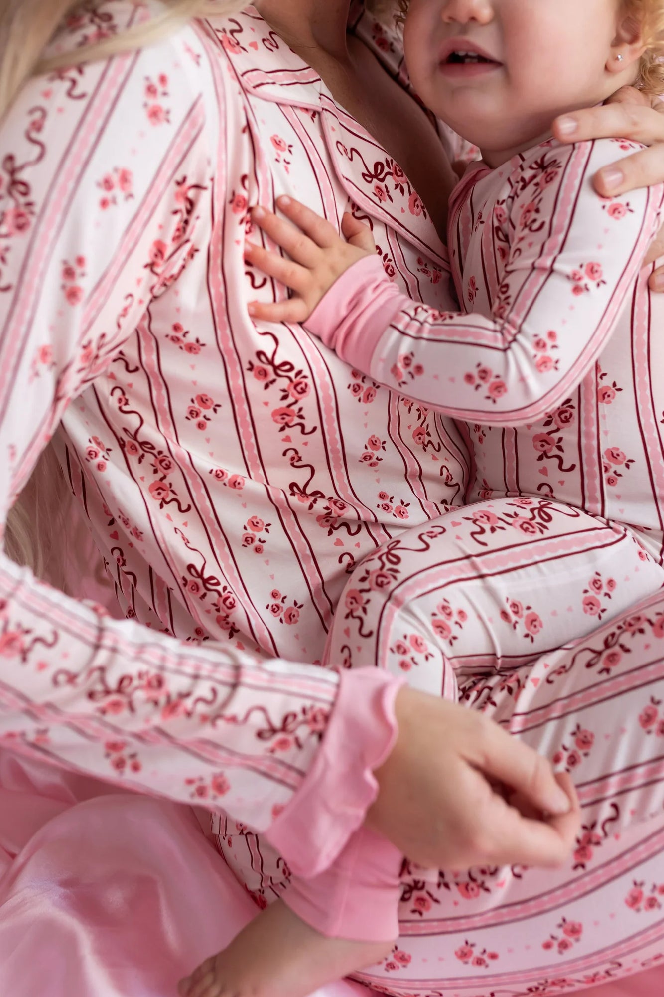Meet Vintage Love, a timeless Valentine’s Day favorite designed to be worn long after the candy hearts are gone. This sweet pink and red print blends delicate florals with vintage inspired stripes for a look that feels nostalgic, cozy, and perfectly playful.