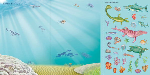 - Simply place the foil stickers on each background scene to bring your prehistoric vision to life!