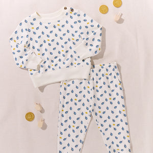 Holiday Bonus! Our Baby Jax Jogger Set keeps little ones ready to roll. Made from super-soft organic cotton jersey, the long-sleeve sweatshirt features ribbed cuffs and hem, plus an easy button closure at the neck for quick changes. The comfy jogger bottoms have side pockets (for tiny treasures!) and ribbed ankle cuffs for the perfect fit. Finished with our signature Coop logo patch at the back because every journey needs a little style!