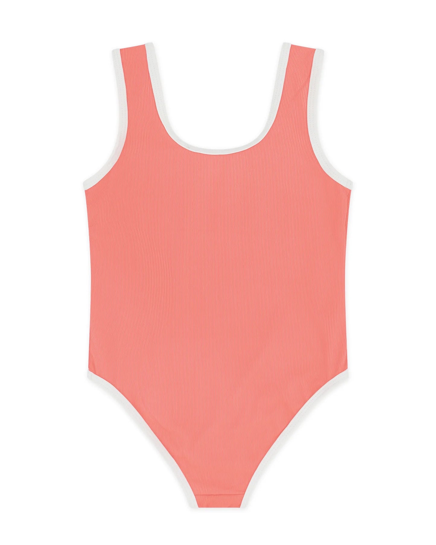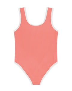 Ready for fun! Our retro inspired Wave Break One-Piece is crafted in a soft mini rib fabrication with contrast binding and sparkling sequin lettering.