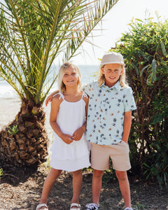 🌸 Design Detail – An adorable double gauze tank and skirt set with adjustable tie straps finished with colorful tassels. Designed with a scoop neck and flowy blouse, paired with a sweet skirt crafted with an elastic waistband and tiered ruffles for a sweet and playful fit.